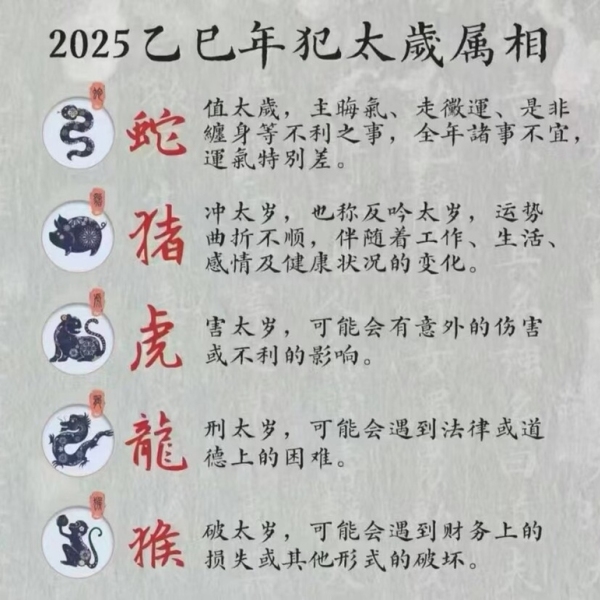 以2025年为例,属蛇、猪、虎、猴等犯太岁的生肖,犹如在命运的长河中航行时遭遇了暗流,需要格外留意躲星之事。就拿太岁星来说,正月初四亥时(21:00 - 23:00)是躲避的关键时刻。人们会提前做好准备,选择一个安静、避光的房间,仿佛为自己构筑一个安全的港湾。关闭门窗,隔绝外界的喧嚣与干扰,尽量不与外界接触,仿佛将自己与可能带来不利影响的因素隔离开来。